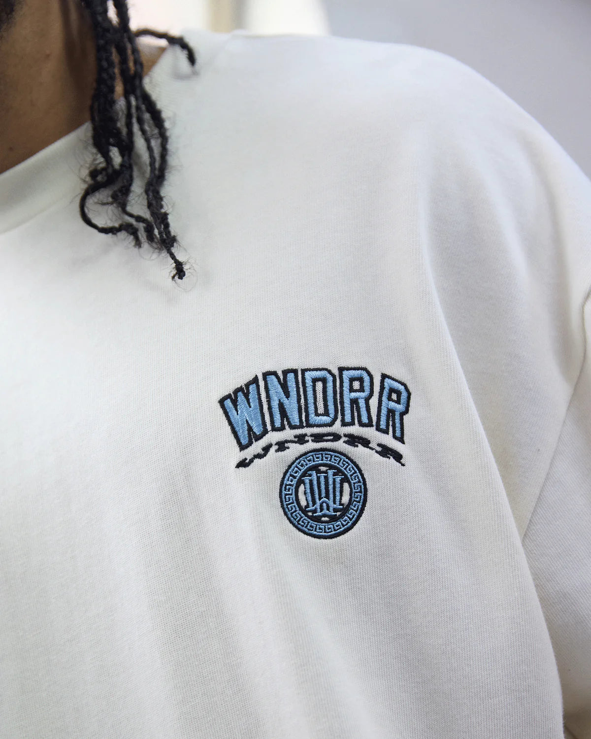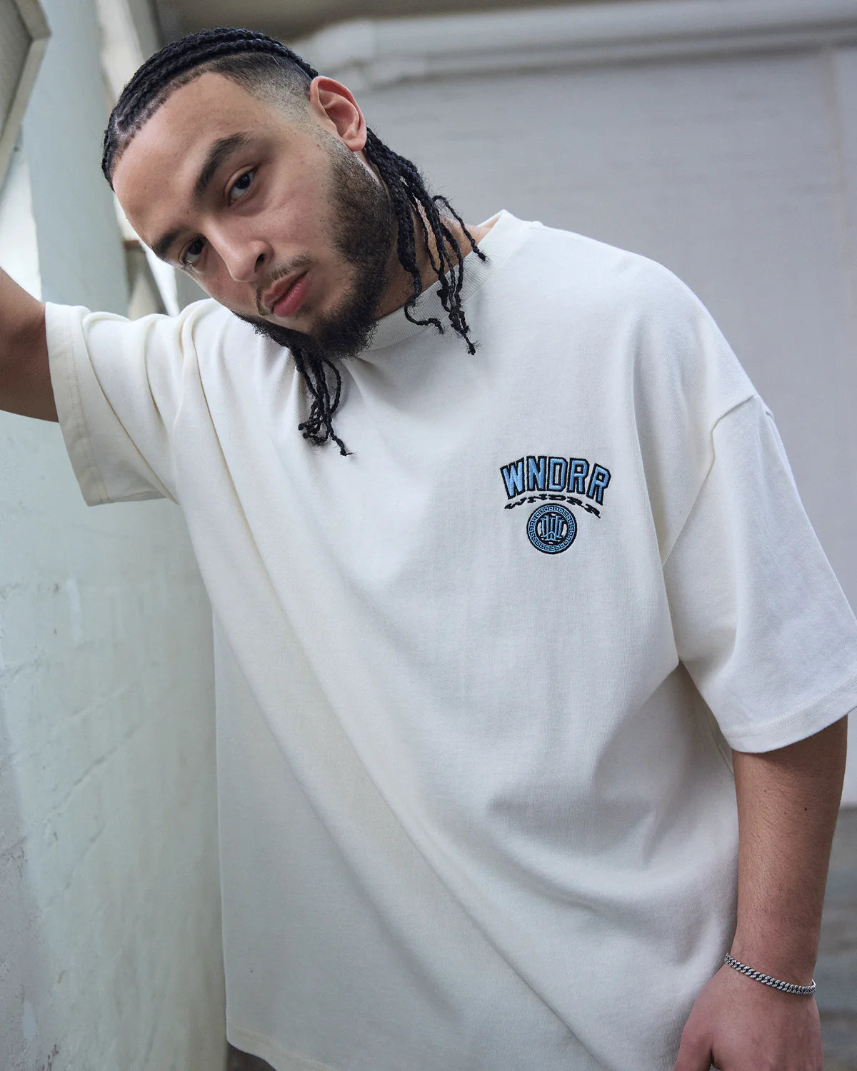 Upgrade your streetwear wardrobe with the WNDRR Emporium Men’s Heavy Weight Tee in off white. Crafted from premium 280gsm cotton jersey, this men’s heavy weight tee offers durability, comfort, and a relaxed box fit with drop shoulders for a modern streetwear silhouette. Featuring a narrow ribbed neckline and embroidered branding on the front and back, this WNDRR T-shirt combines standout style with premium construction. Perfect for layering or wearing solo, the Emporium Heavy Weight Tee is a versatile addition to any streetwear collection.